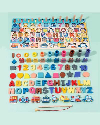 Educational Toy: Wooden Numbers Letters Puzzle Building Blocks Counting Game Kids