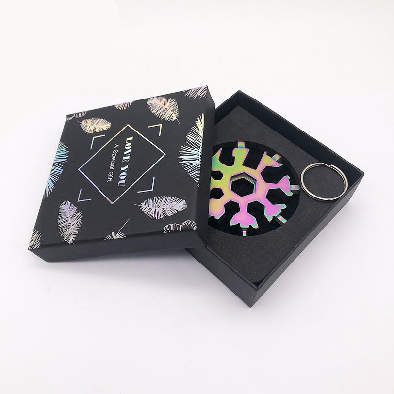 18-in-1 Ultimate Convenience! This amazing "snowflake" consists of a total of 18 different tools, including the regular Philips and flathead screwdriver, No. 3, 4, 5, 6, 7, 8 hex keys, and No. 6, 7, 8, 9, 10, 12, 14 wrenches, even with a bottle opener!